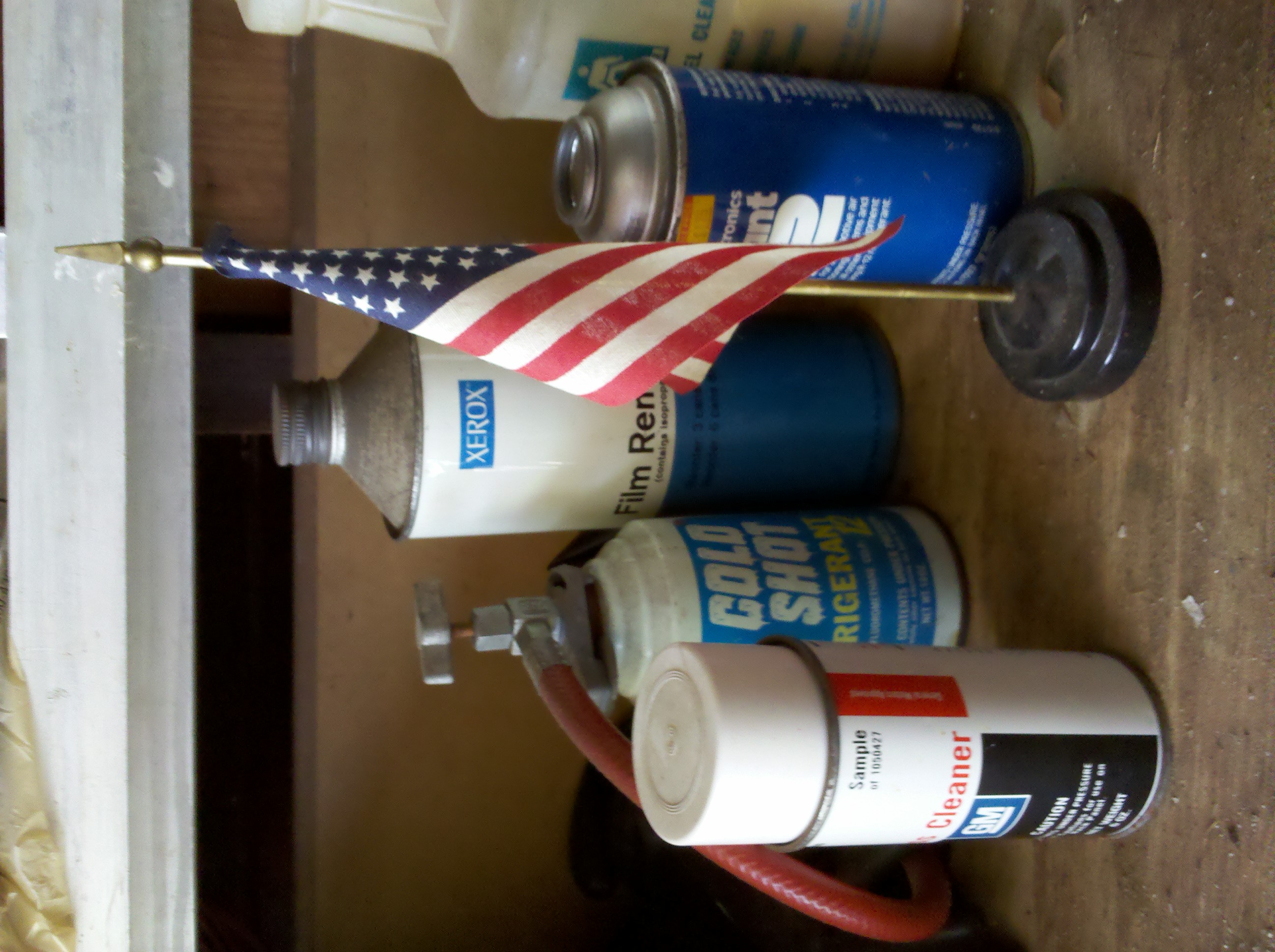 Dust-laden cans from who knows how long ago. Note the collection of dust: