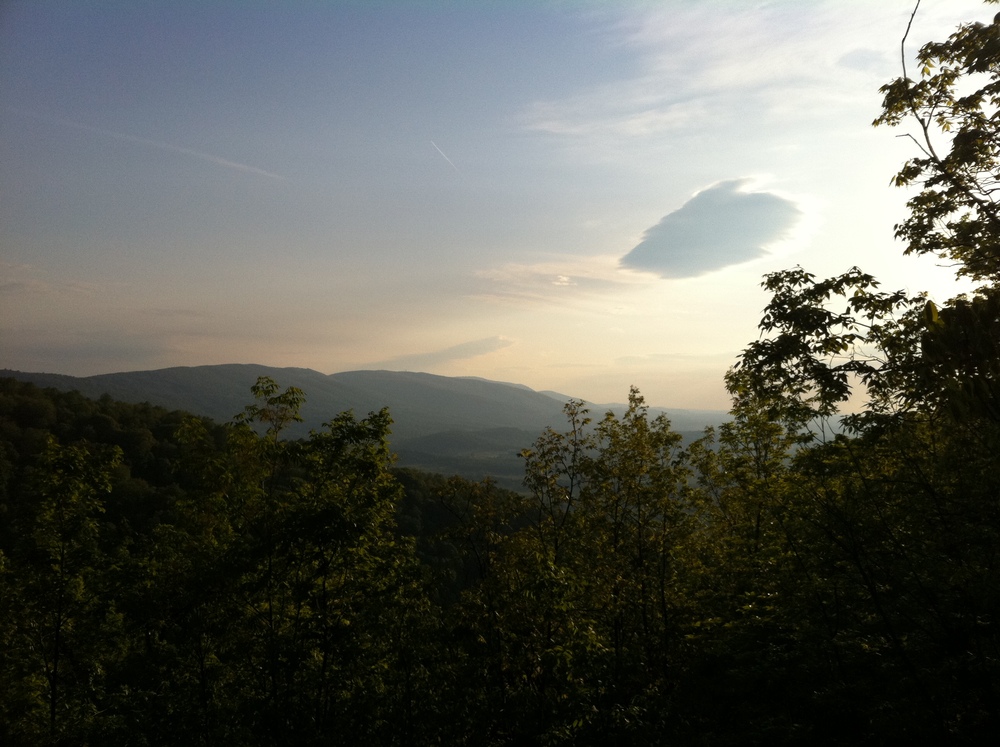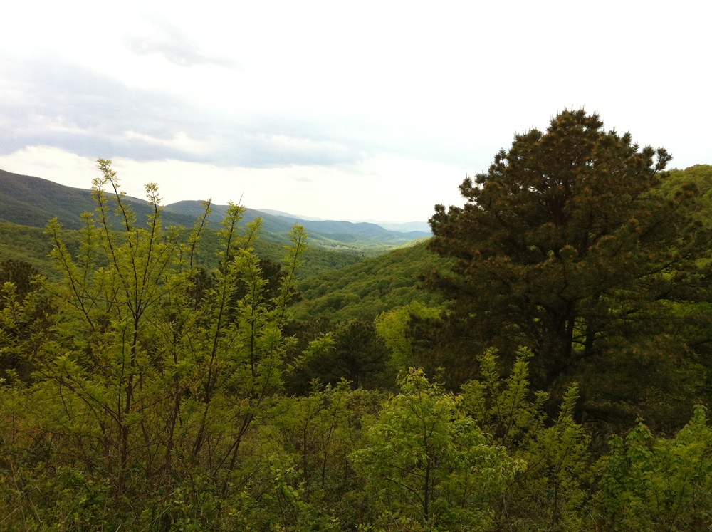 I started off on Friday, 5/6. Tired of I-81 and all of the trucks, I decided to take Route 29. I got to Sawmill Run Overlook in 2.5 hours, but took a wrong turn because the moon shed no light on the SNP sign just off the exit. Further complicating things was a convoluted network of roads to get to the actual Skyline drive. I got there and listened to Pink Floyd until Tommy arrived.