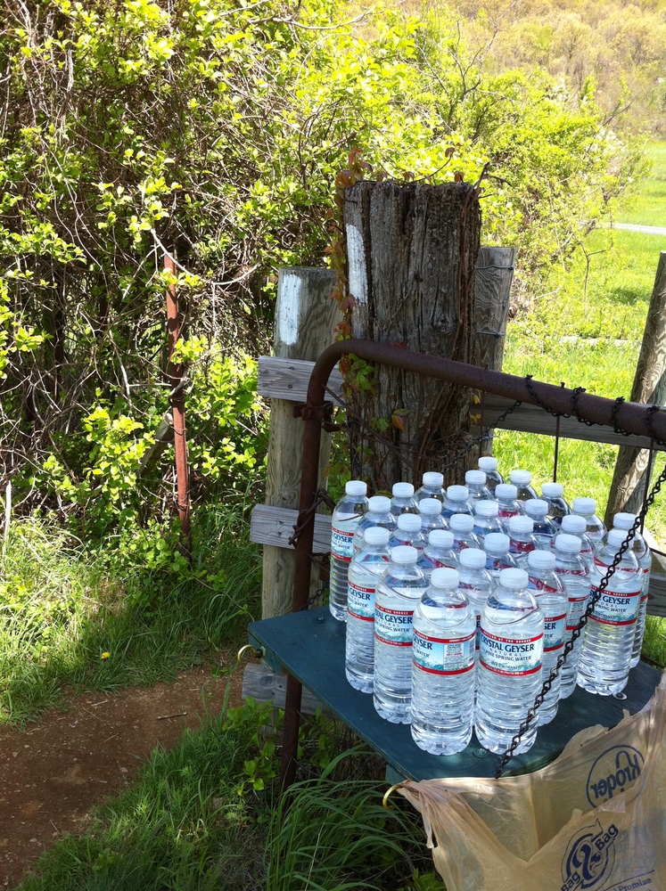 …at the bottom of the plain we catch back up with the thu hiker we’d seen earlier. We stop and chat for a little while longer and find out that his trail name is “No Cello” (he’s a cellist). We tell him about the awesome blackberry milkshakes available throughout the park and also warn him about the rollercoaster just above it. We also help ourselves to some trail magic put there by a section maintainer.
