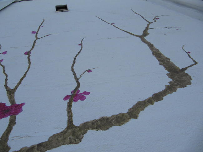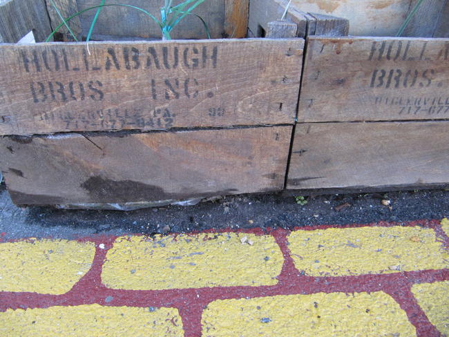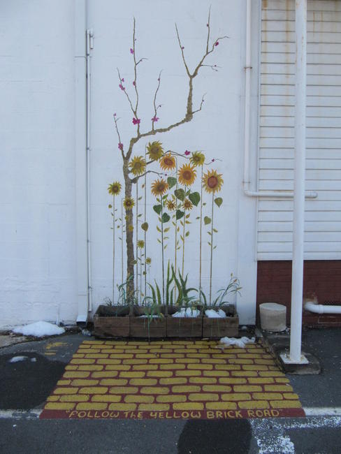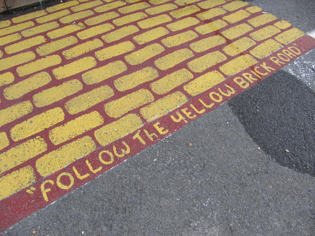 Not only was this thing on the wall, but on the pavement of the parking lot as well. Follow the yellow brick road…into the wall: