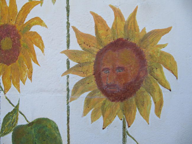 Looking closer one of the sunflowers has the likeness of Vincent Van Gogh in it. That’s a bit odd, but nonetheless cool: