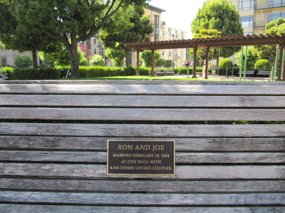 One cool thing to note is that San Fransciso allowed same sex marriages all the way back in 2004. I found this out by noticing a placard on one of the benches in the park. After a little research I also found these photos of the actual event.