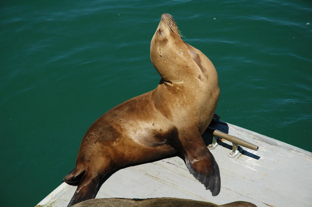 Continuing on to Santa Cruz, we found ourselves suddenly warm. From the cold of the low 60s in San Francisco and into the fog, Santa Cruz was a relatively balmy 75 and sunny. We parked easily (it was a work day after all) and walked down the wharf, where we saw some wild sea lions enjoying the weather.