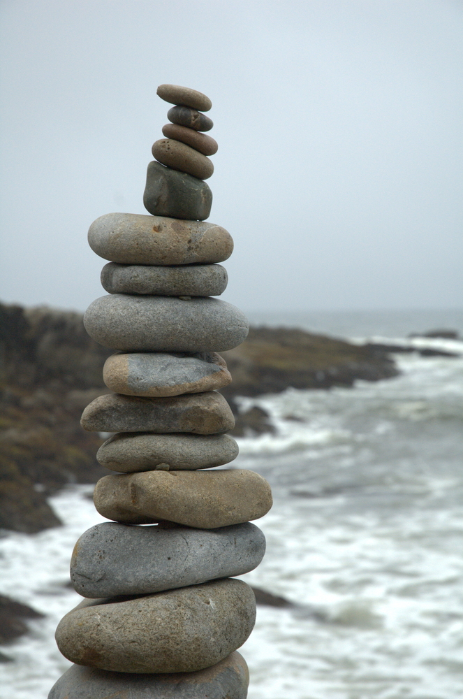 Looking over the edge we saw a pathway that led to a beautiful beach. Upon the beach someone had built a tower out of rocks about five feet tall. I tried to add smaller rocks to it but didn’t succeed.