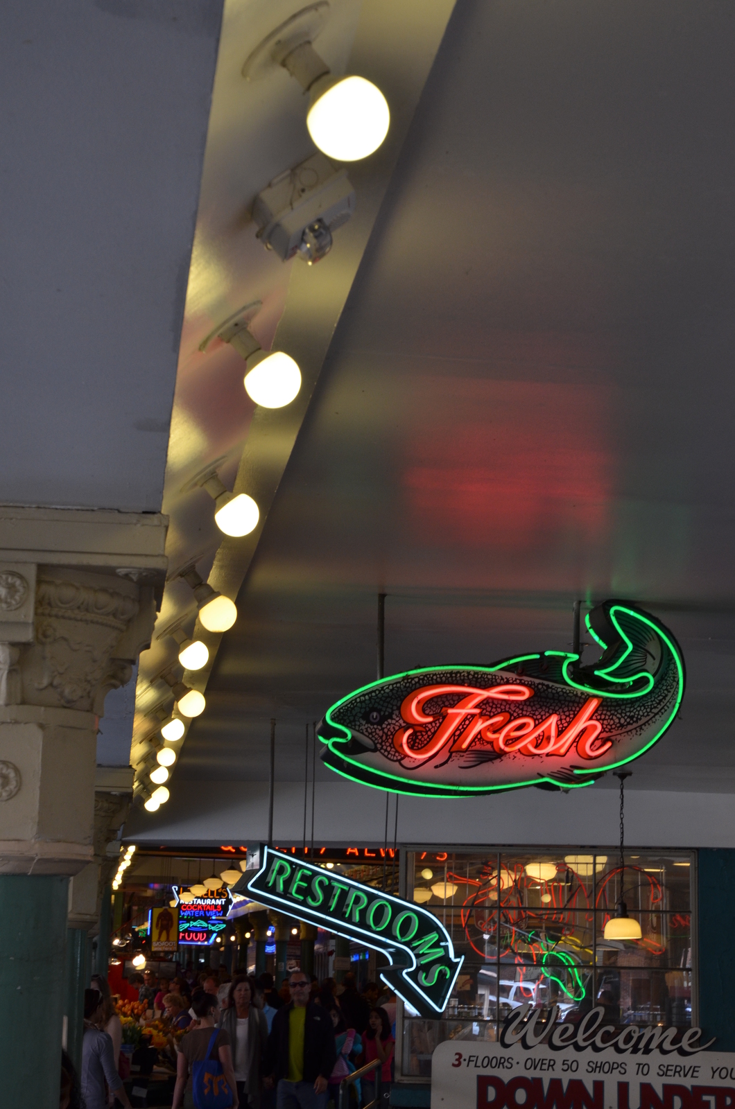 We walked a few blocks from REI into the main downtown area, where I bought a coffee from Starbucks store #1. We walked back through the market, looking at all of the flowers and the crowds of people. Just past the market we ducked down into an alley to see the famous (infamous?) bubble gum wall. Looking at all of the goo on the wall and smelling that distinct smell of aging spit is something I won’t soon forget. It was very cool to see though.