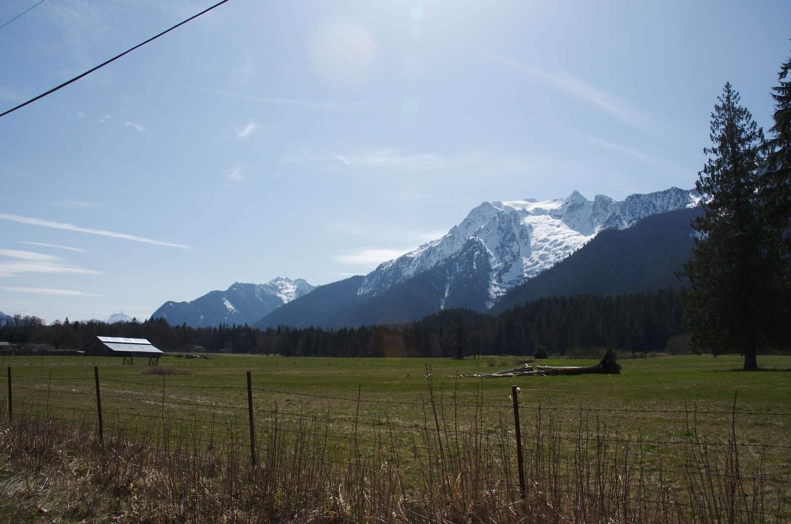 After cleaning up, the three of us set out in the Jeep towards Cascades National Park. It was another strangely beautiful day, and I spent the trip looking at the moss that seemed to cover every single tree. We soon came upon snow-covered peaks and scenic farms, which were in direct contrast with the uber-green of the spring grass.