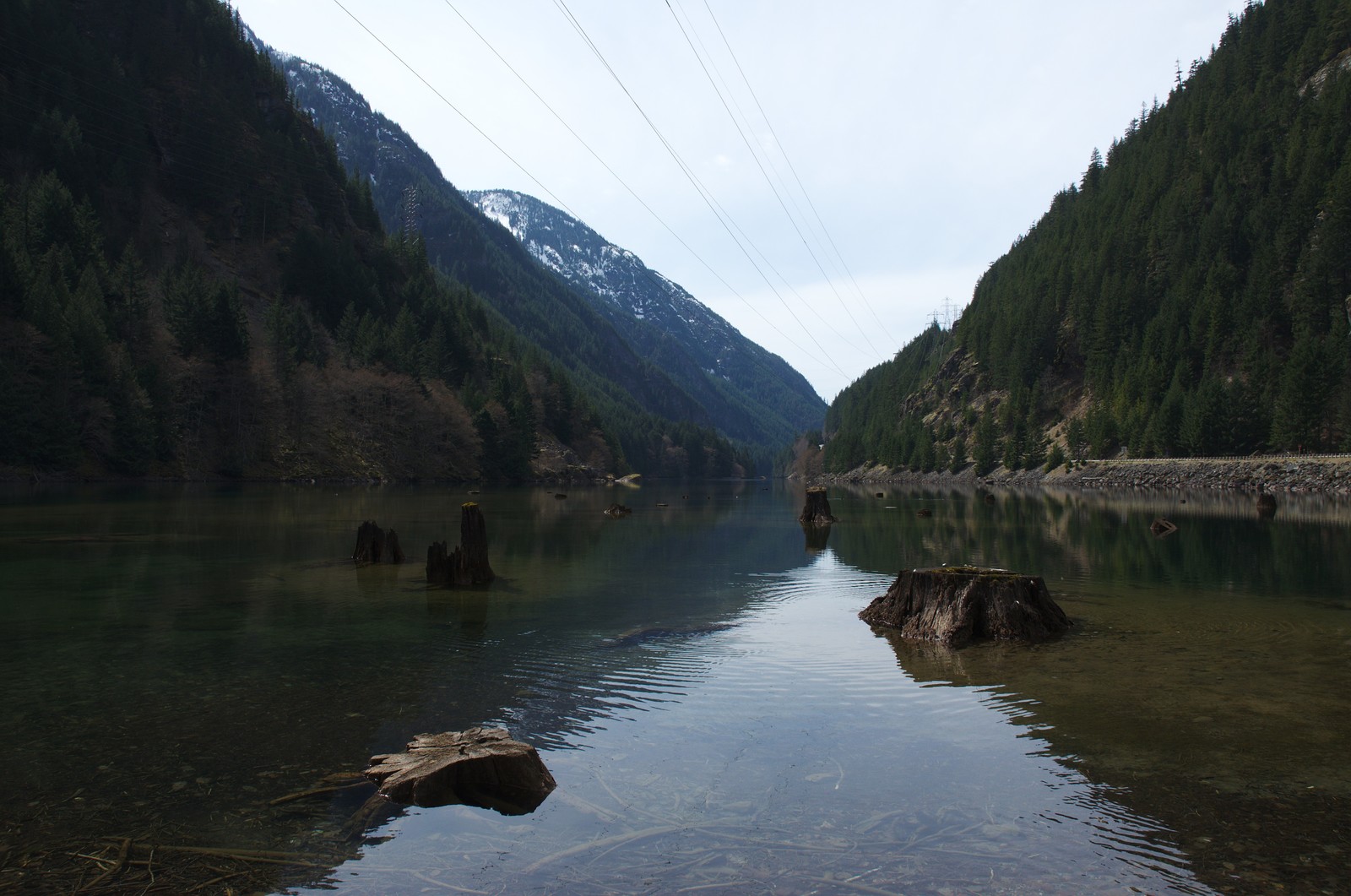 One other thing I’ll note about the trip out of the park is the cut tree stumps just below the water line. Diablo Lake was created by the Diablo Dam as a part of the Skagit River Hydroelectric Project in the late 1920s. In the process of creating the dam lots of trees were cut, and the interesting thing is that they look like there were cut yesterday. The water just preserved the look so well, which was fascinating to see compared to the stumps that have been out of the water the entire time. By contrast those ones looked weathered and incredibly old (as you’d think they’d be).