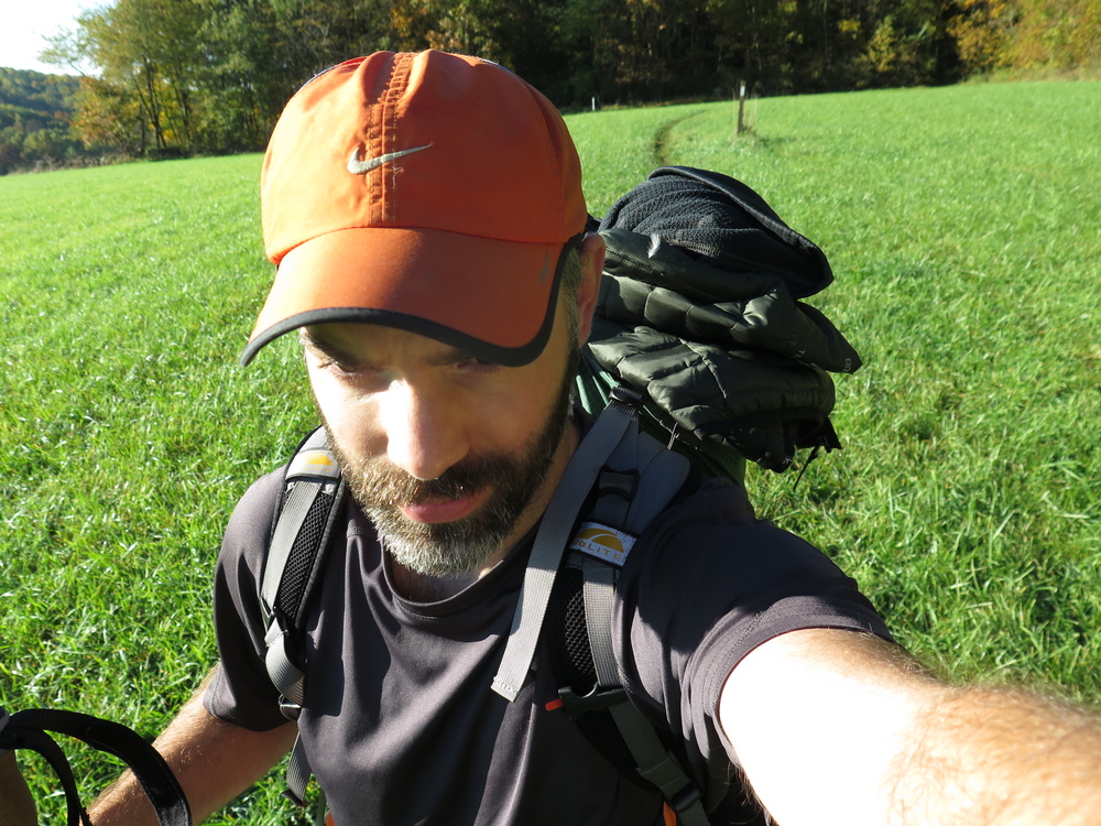 Jerry and Chris were lightning fast with their packing this morning, mostly due to their choice to stay inside the shelter. We set out from camp around 8:20 and immediately went up a half-mile incline. In no time at all we crossed a powerline cut, giving us a gorgeous view of the sun painting its rays across the trees. Those same rays were cutting through the trees even when under the canopy, which gave the morning an ethereal quality that I loved.