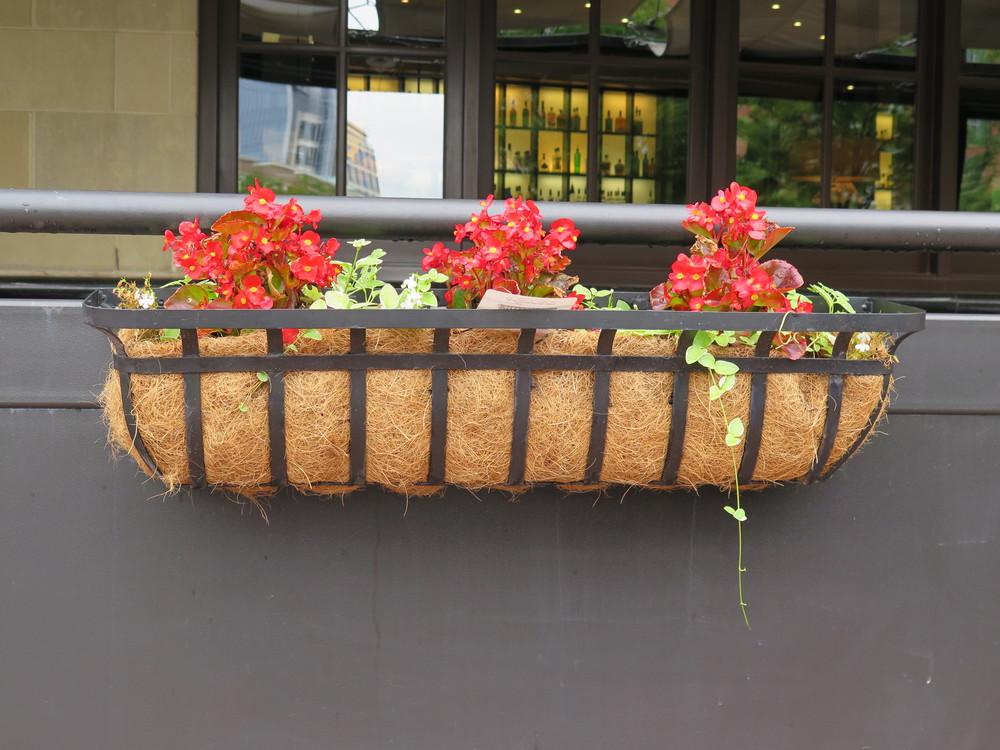 I continue to love my Canon G16, which I recently purchased for its portability and quality. Reston is the likely choice for a photo walk with it, since I work there and flowers are everywhere. Here are a couple after the maintenance crews watered them all.